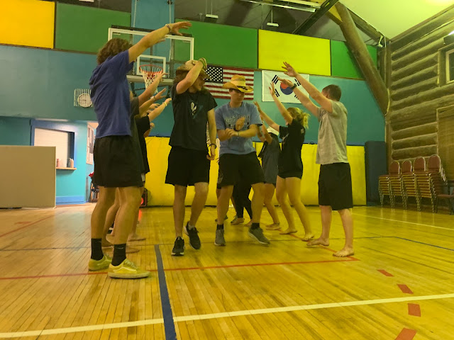 Howdy partners! Today was day 18. We were fortunate enough to sleep in ‘til a rare 7:15, a whole extra hour! We packed up from Ponderosa, as Will and Sanders climbed trees, and started our journey to the beautifully uninteresting South Dakota. However, the journey to the lower Dakota took us through more of the beautiful state of Wyoming. Throughout the morning, we saw countless waterfalls, beautiful yellow and red cliffs under beautiful skies, and trees and grass; a refreshing sight after miles of desert. For breakfast, we munched on “big muffins” and bananas for some much needed vitamins after the days’ countless carbs. The day was filled with plenty of driving, but it seemed to go quicker than most days, with amazing conversation between friends. We also got to stop at an amazing truck stop that might as well have been a free ice cream bar (free samples), general store, and restaurant all in one. Many people got coffee and took advantage of the delicious pizza selection to the annoyance of our counselors and bus driver. After this stop, we had a lunch of King’s Hawaiian rolls with ham, turkey and cheese, along with chips and cookies. We drove on for another couple hours before reaching one of the biggest Walmarts we had been to. The girls really had to use the restroom, but it was in the middle of being cleaned, so they forced the employee to take his break to use it. Leah also fell on her way to the bathroom, tired from the 102 degree parking lot, oops. From here, it was not a long drive to Custer State Park where we began practicing for a dance competition to the song, “Blinding Lights” by the Weeknd while our cooks made a nostalgic meal of chicken nuggets, watermelon and lots of mac n’ cheese. Zac got a little roughed up when Ethan was trying to vault over him and Braydon, pushing his head down to the pavement. Don’t worry, he’s alright! After a delicious dinner, we went to Mount Rushmore, an undeniably important landmark to American history and determination. As we gazed upon the Heads of Tom, Georgie, Ted and Abe, we ate overpriced ice cream and bought overpriced souvenirs. Then, we went to our sleeping accommodation for the night, a YMCA gym that doubled as the world’s largest freestanding log cabin according to the kind, lifeguard who managed it. We then held our dancing competition. It was a tough battle with lots of effort from all groups, but in the end Sneezys pulled through and managed to win. After the day’s excitement, we finally bedded down and headed to sleep.